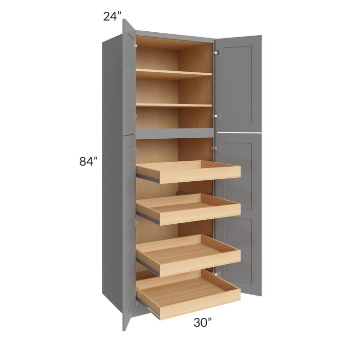 Graphite Grey Shaker 30x84x24 Wall Pantry Cabinet with 4 Rollout Trays
