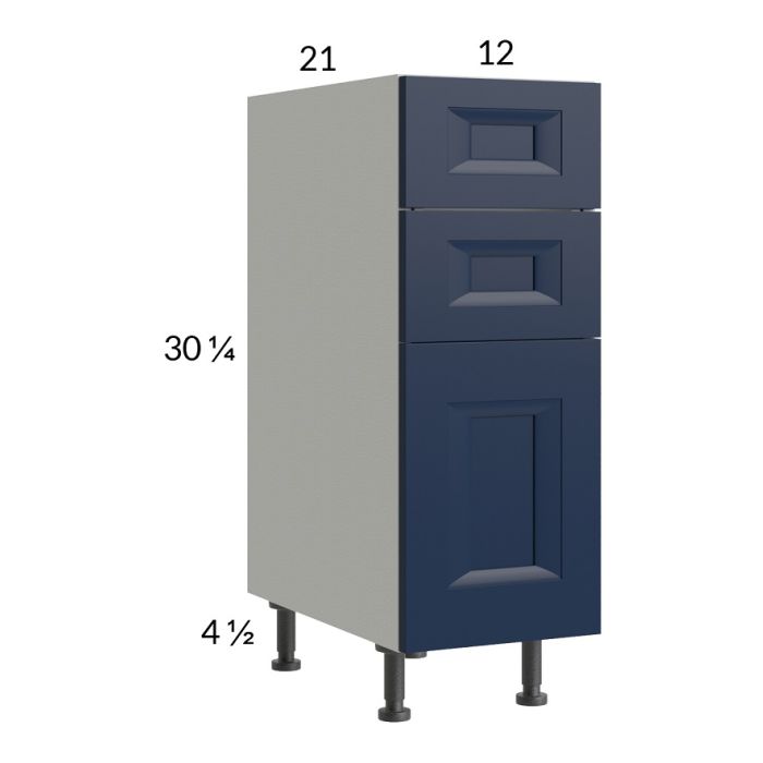 Harbor Navy 12" 3-Drawer Vanity Base Cabinet