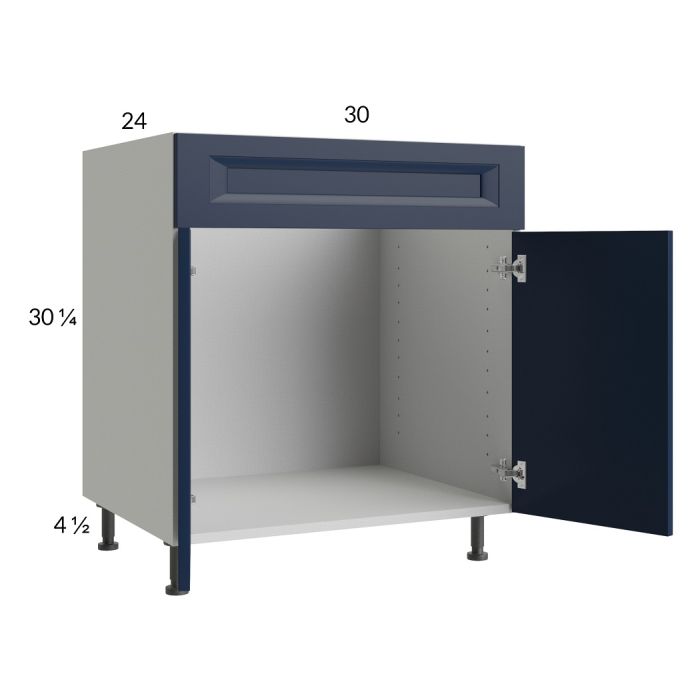 2 door sink base cabinet with 1 false drawer fronts and no shelves.