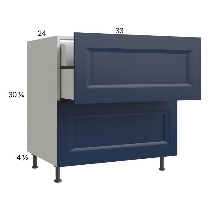 Description / Harbor Navy 33" 2-Drawer Base Cabinet with 1 Inner Drawer