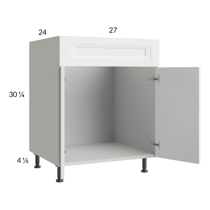 2 door sink base cabinet with 1 false drawer fronts and no shelves.