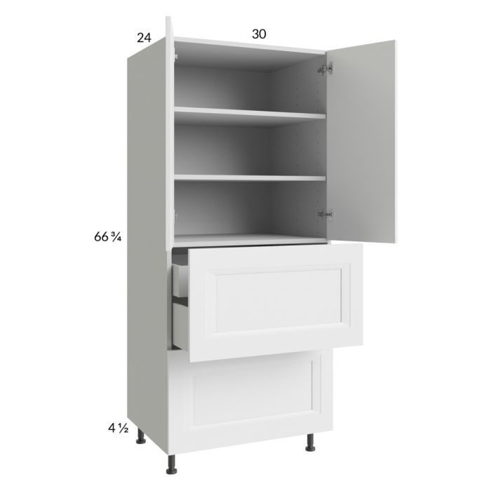 Description / Harbor White 30x71-1/4 Utility Cabinet with 2 Doors, 2 Drawers and 1 Inner Drawer - Out of stock through late March