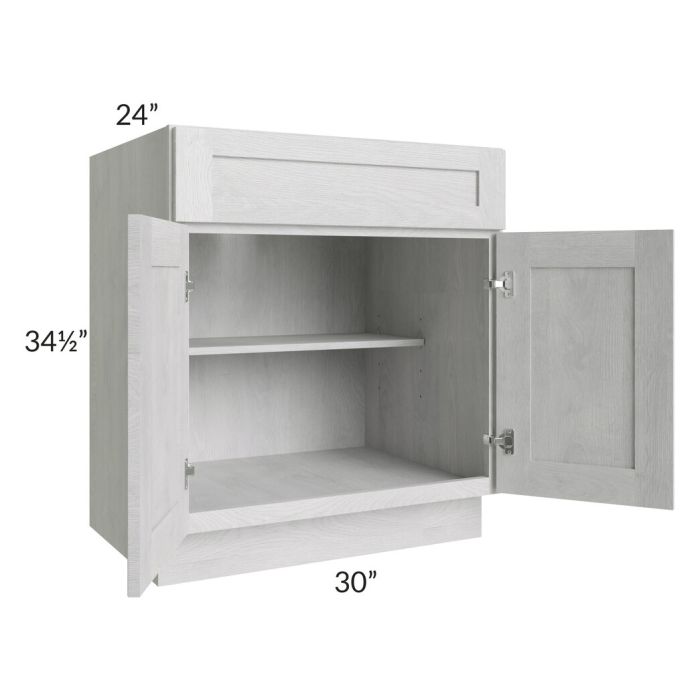 2 door base cabinet with 1 drawer and 1 shelf. There is no center stile on this cabinet.