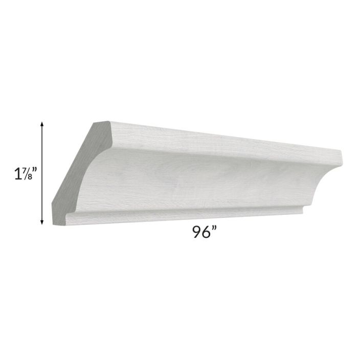 Crown molding that comes in an 8 foot strip. Commonly used to finish the top of wall cabinets. Once installed, the crown will stick out about 1-5/8" from the cabinet and the height off the cabinet will be about 1-7/8".