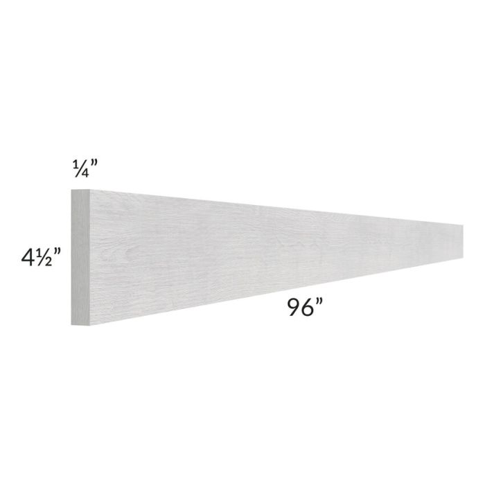 Toe kick that comes in an 8 foot strip. Only the front will be finished, the back, top, bottom, and sides are all unfinished.