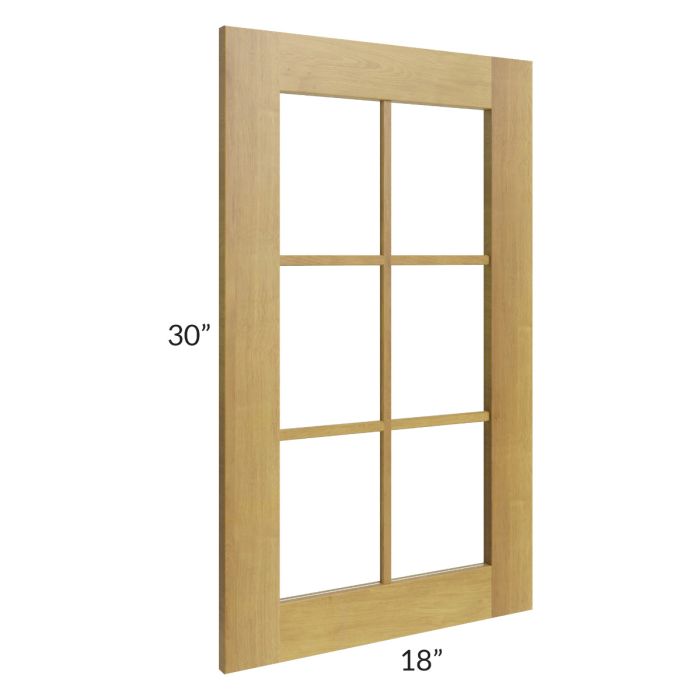 Glass door for a 18"W x 30"H wall cabinet that will match the door style of the cabinet and has plain glass. The glass is also included.