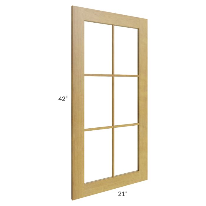 Glass door for a 21"W x 42"H wall cabinet that will match the door style of the cabinet and has plain glass. The glass is also included.