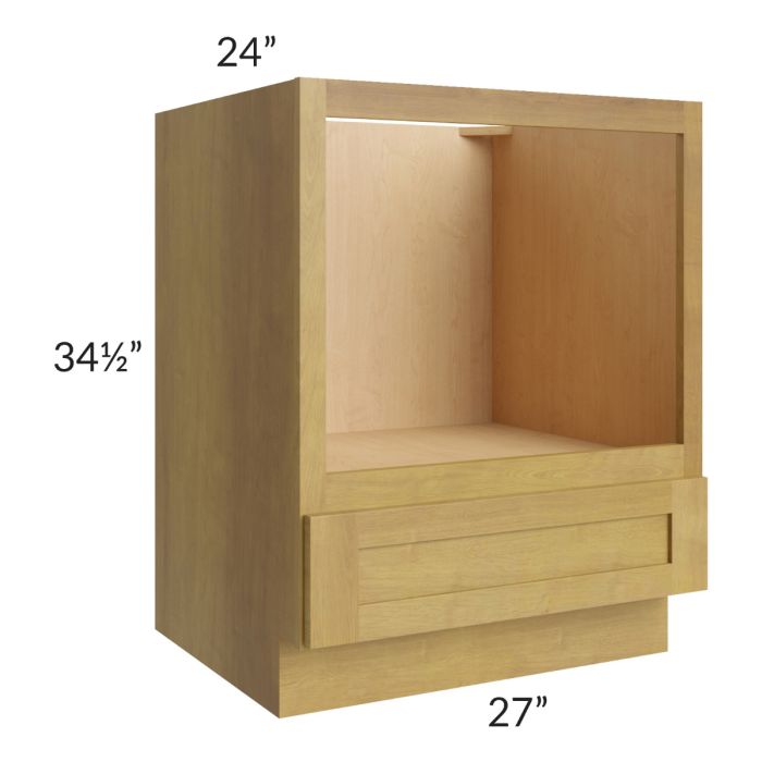 Base microwave cabinet with 1 drawer on bottom, the drawer front measures 26-1/2"W x 8"H. Opening will be 24"W x 15-1/2"H.