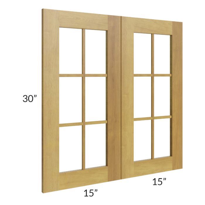 Set of mullion doors for a 30"W x 30"H wall cabinet that will match the door style of the cabinet and has clear glass. The glass is also included.