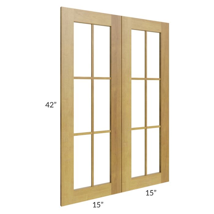 Set of mullion doors for a 30"W x 42"H wall cabinet that will match the door style of the cabinet and has plain glass. The glass is also included.