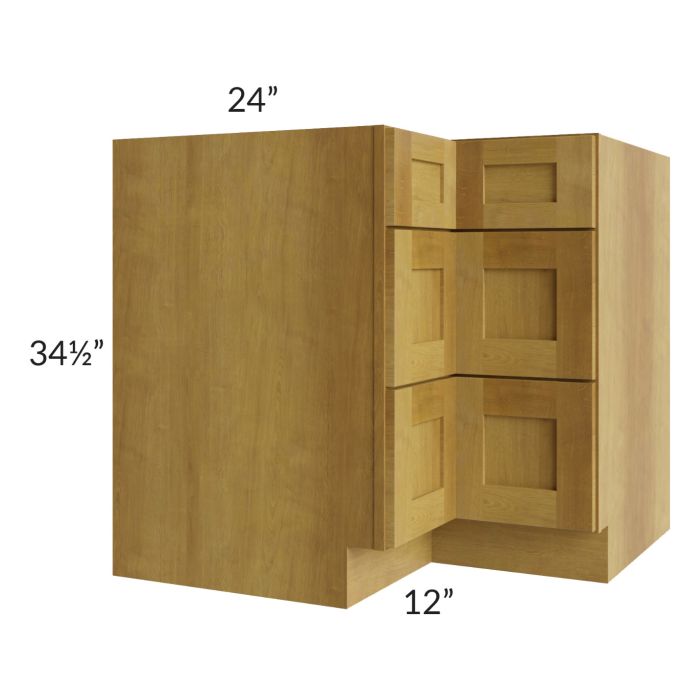 Description / Heritage Amber Shaker 36" Corner Three Drawer Base Cabinet
