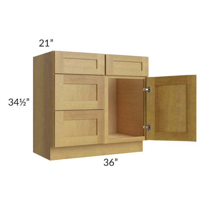 Heritage Amber Shaker 36" Vanity Sink Base Cabinet (Drawers on Left)