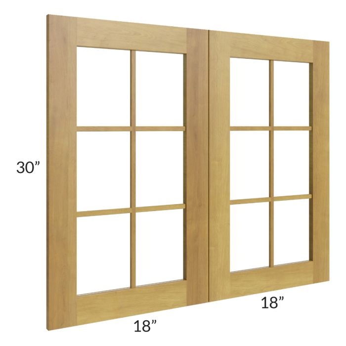 Set of mullion doors for a 36"W x 30"H wall cabinet that will match the door style of the cabinet and has clear glass. The glass is also included.