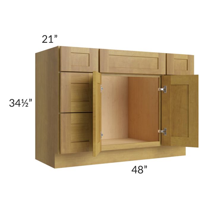 Description / Heritage Amber Shaker 48" Vanity Sink Base Cabinet with Drawers