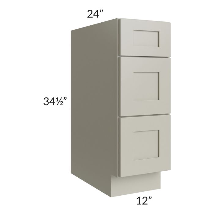Kingston Pearl Grey Shaker 12" 3-Drawer Base Cabinet