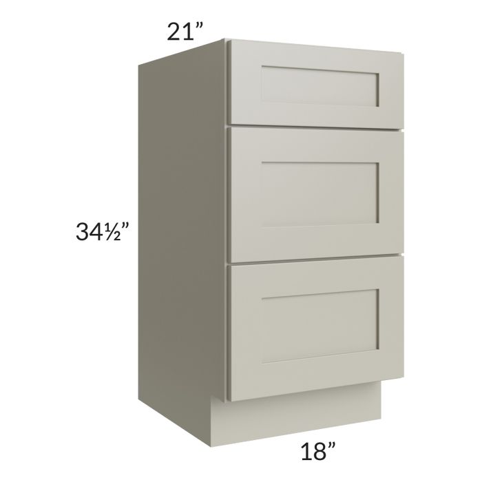 Kingston Pearl Grey Shaker 18" 3-Drawer Vanity Base Cabinet