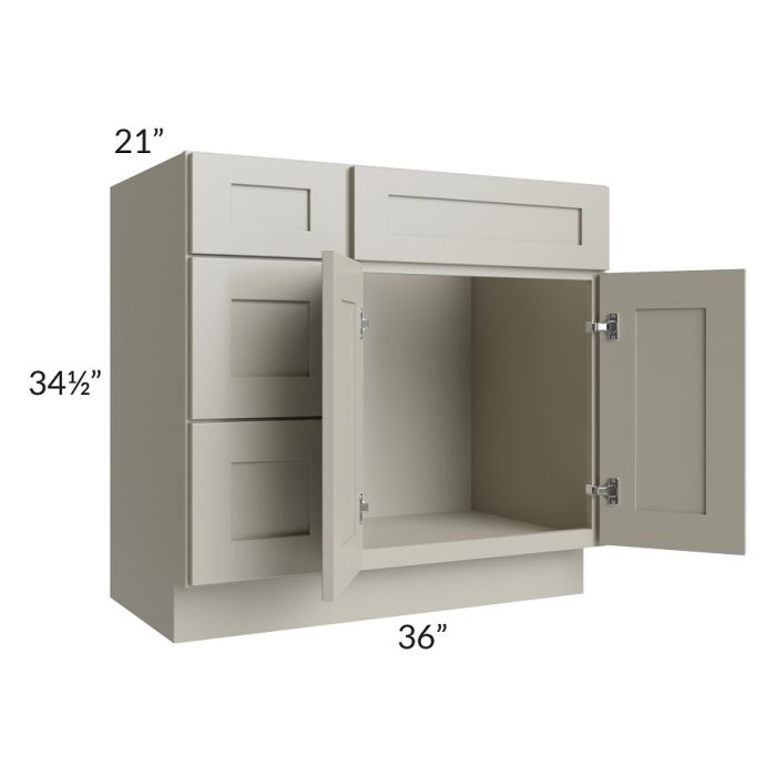 Kingston Pearl Grey Shaker 36" Vanity Sink Base Cabinet (Drawers on Left)