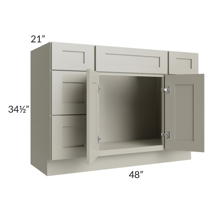 Description / Kingston Pearl Grey Shaker 48" Vanity Cabinet with 6 Drawers