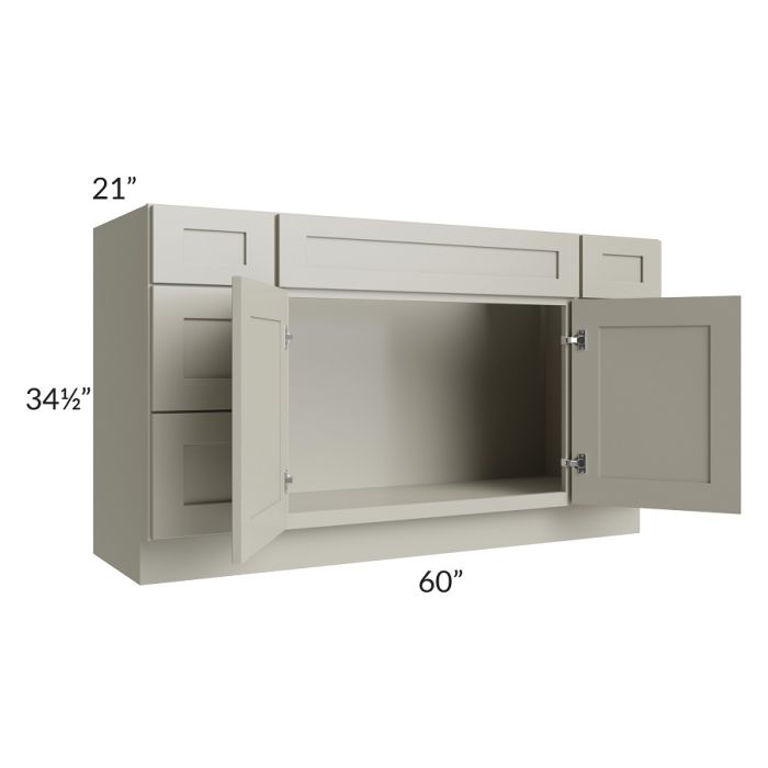 Description / Kingston Pearl Grey Shaker 60" Vanity Cabinet with 6 Drawers