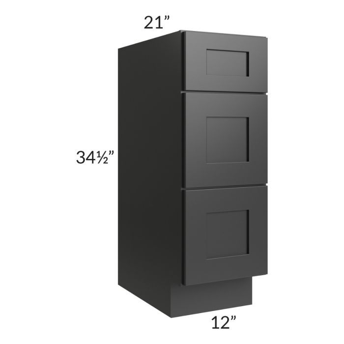 Description / Kingston Steel Grey Shaker 12" 3-Drawer Vanity Base Cabinet