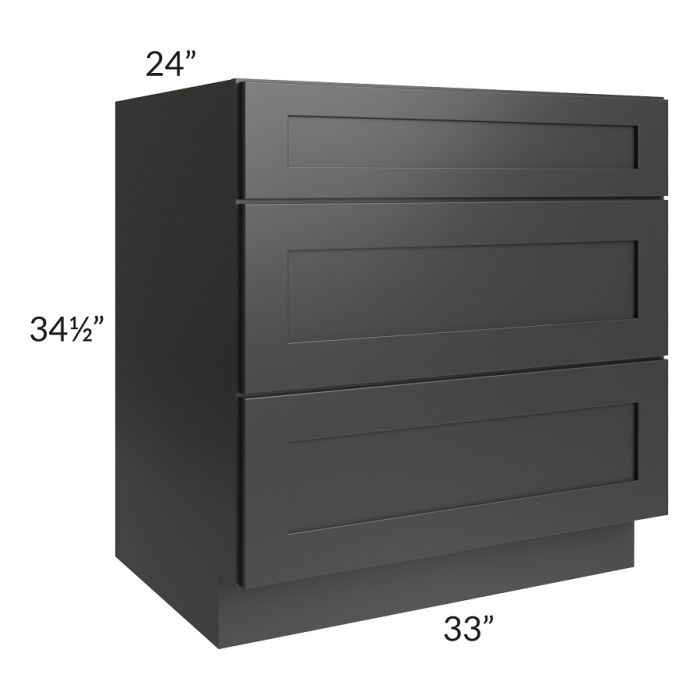 Description / Kingston Steel Grey Shaker 33" 3-Drawer Base Cabinet