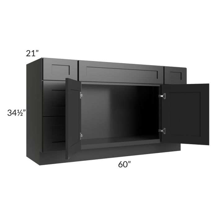 Description / Kingston Steel Grey Shaker 60" Vanity Cabinet with 6 Drawers