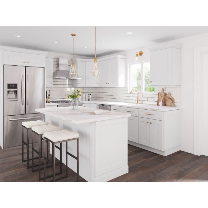 The Aspen White Shaker pre-assembled cabinet collection offers a fresh, crisp, and clean look to any kitchen. The bright white finish will surely lighten the kitchen space and add a modern touch to your home. These cabinets are full overlay doors and come with beautiful dovetail drawers and soft closing drawer features.