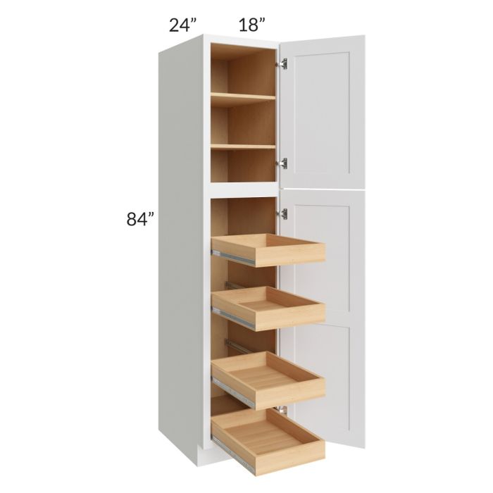 Lakewood White 18x84x24 Wall Pantry Cabinet with 4 Rollout Trays - Low stock through mid May