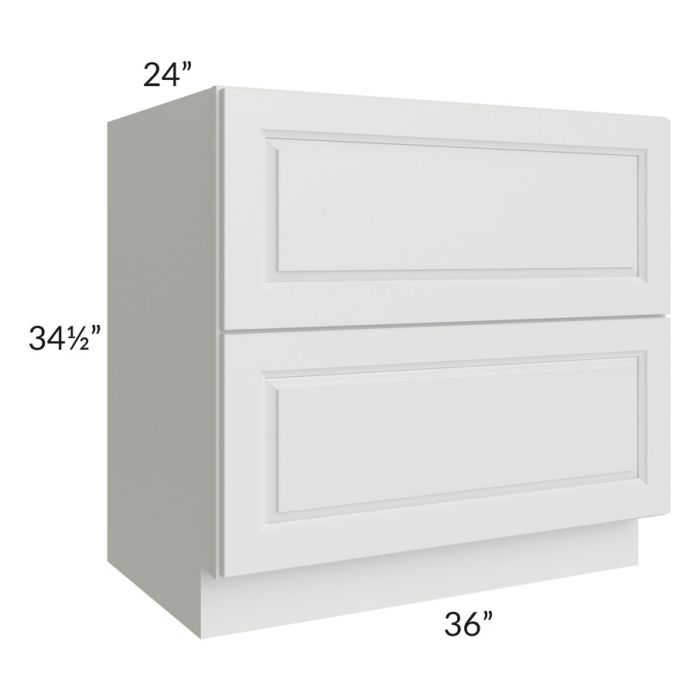 Description / Lakewood White 36" 2-Drawer Base Cabinet