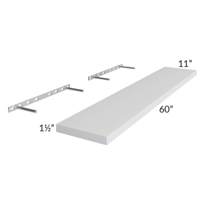 Floating shelf that will also include the mounting hardware. Once mounted, the shelf will be able to move or 'float' to the left and right. Each shelf can hold up to 25lbs. It can be trimmed up to 1/2” on each side but then will have a raw exposed edge so should be placed adjacent to a cabinet, panel, wall, etc...or the raw edge will have to be finished.
