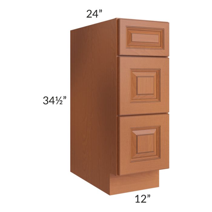 Description / Lexington Cinnamon Glaze 12" 3-Drawer Base Cabinet