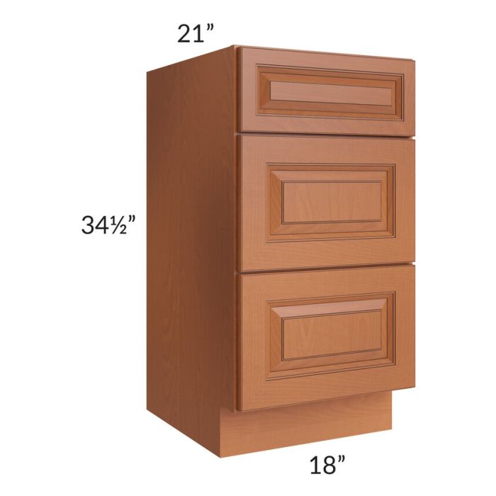 Lexington Cinnamon Glaze 18" Vanity 3-Drawer Base Cabinet - Out of stock through June