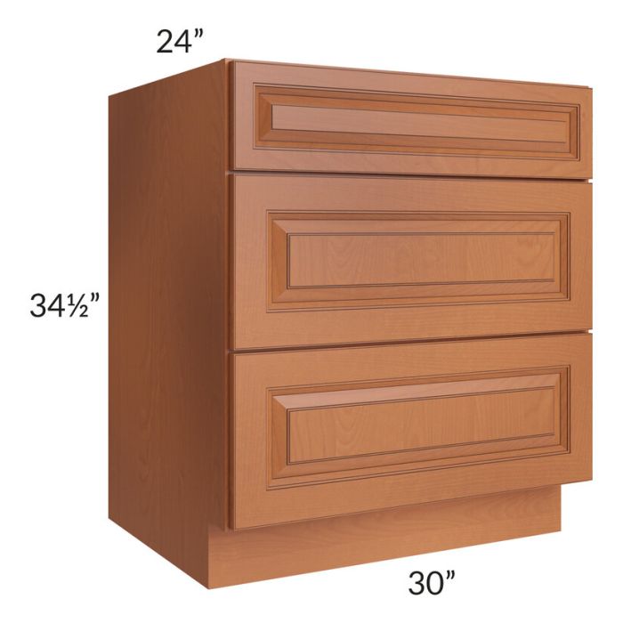 Description / Lexington Cinnamon Glaze 30" 3-Drawer Base Cabinet