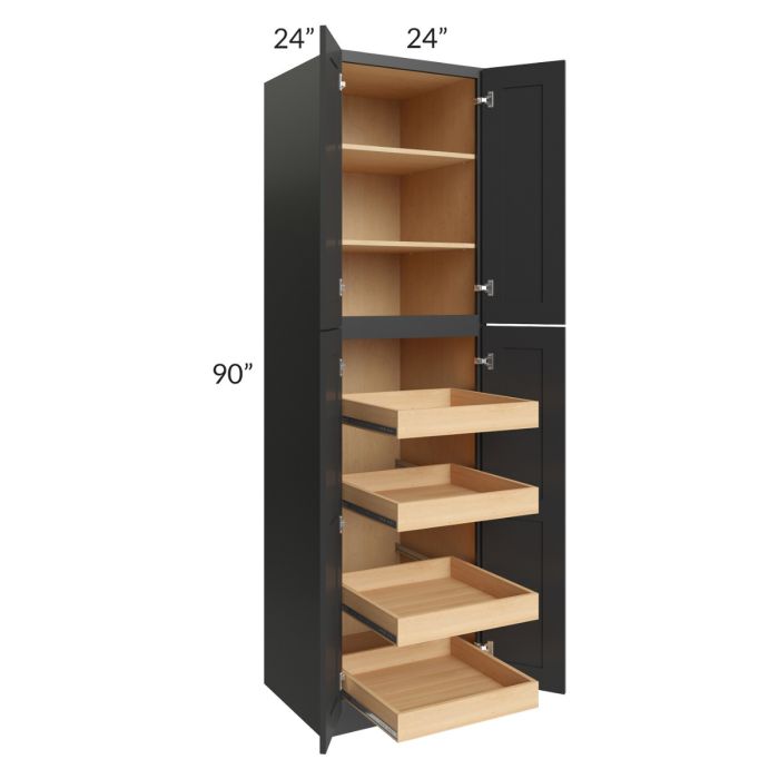 Madison Black Shaker 24x90x24 Wall Pantry Cabinet with 4 Rollout Trays