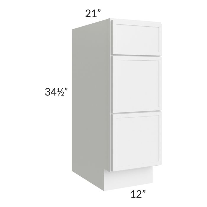 Metro White 12" 3-Drawer Vanity Base Cabinet