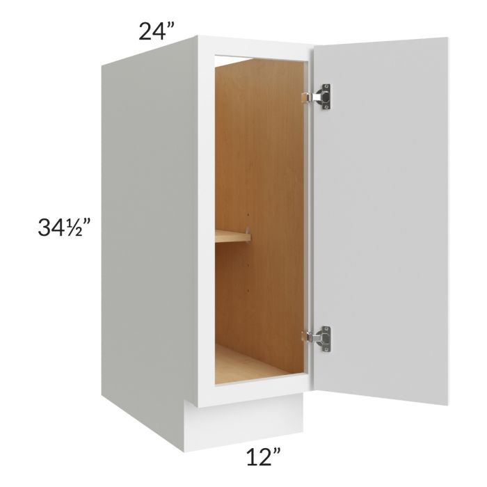 1 door base cabinet with 1 full height door and 1 shelf. A regular 12" base cabinet with a drawer will be shipped in addition to a full height face frame and door. The face frame, door and drawer box that comes with the 12" cabinet can be discarded and the full height face frame and door will be installed on the cabinet box.