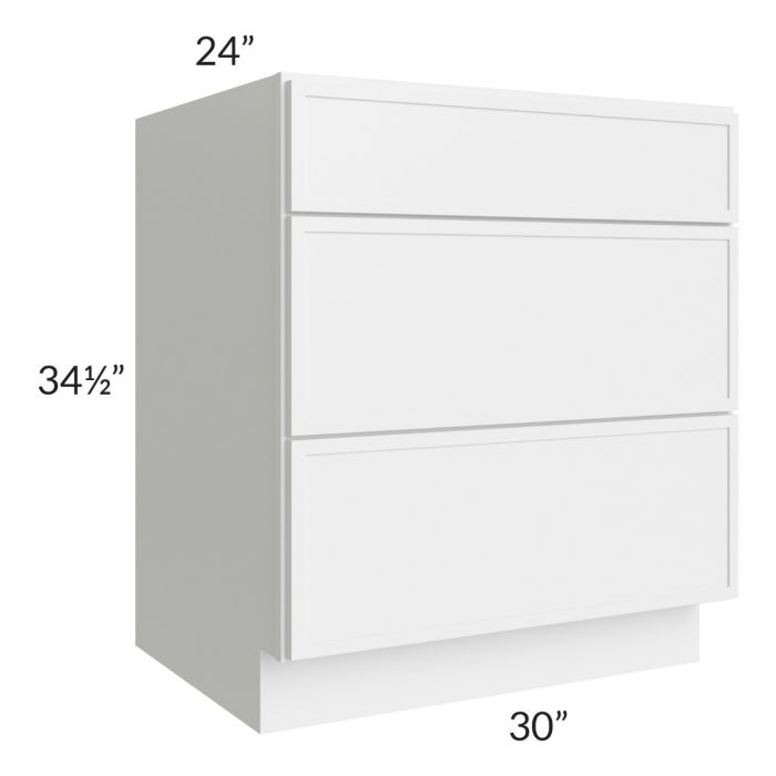 Metro White 30" 3-Drawer Base Cabinet