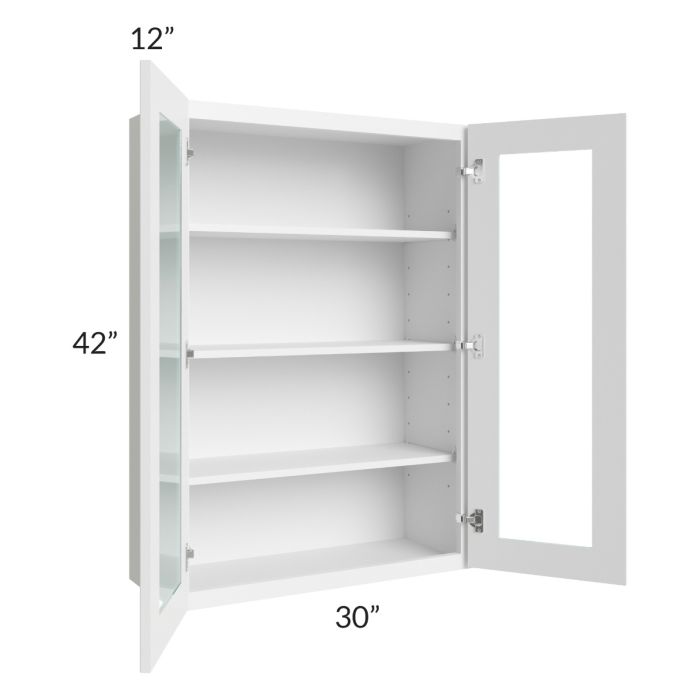 Metro White 30x42 Wall Glass Door Cabinet (Prepped for Glass Doors)