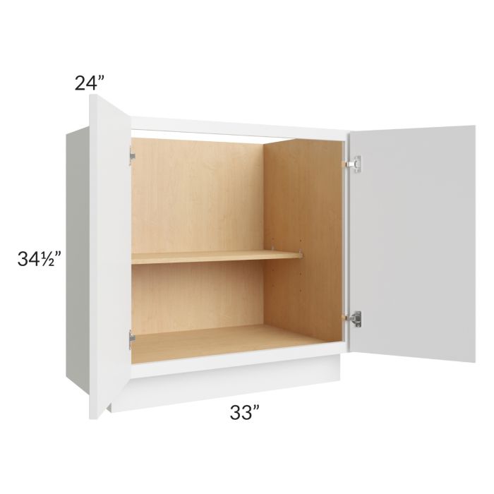 2 door base cabinet with 2 full height doors and 1 shelf. A regular 33" base cabinet with a drawer will be shipped in addition to a full height face frame and doors. The face frame, doors and drawer box that comes with the 33" cabinet can be discarded and the full height face frame and doors will be installed on the cabinet box.