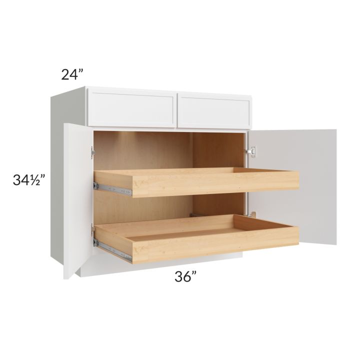 Metro White 36" Base Cabinet with 2 Rollout Trays
