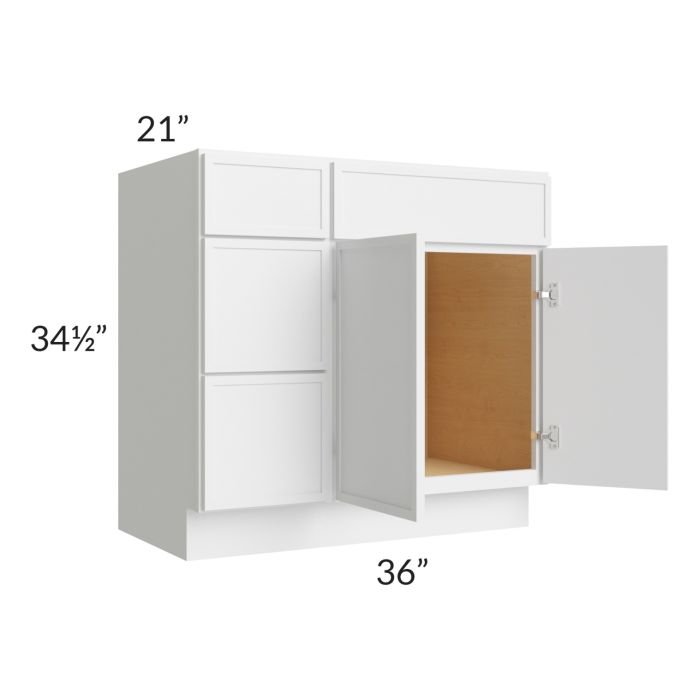 Metro White 36" Vanity Base Cabinet (Drawers on Left)