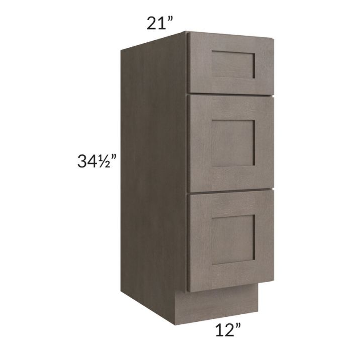 Natural Grey Shaker 12" Drawer Base Bathroom Vanity Cabinet