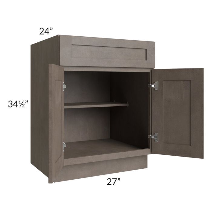 2 door base cabinet with 1 drawer and 1 shelf. There is no center stile on this cabinet.