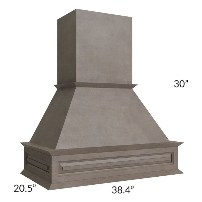 Wood range hood with no decorative rail. The top 30" is trim-able if needed. The hood is 38-3/8" at widest point of base. This is for an actual hood, not a hood cover and a separate liner and blower will be needed.