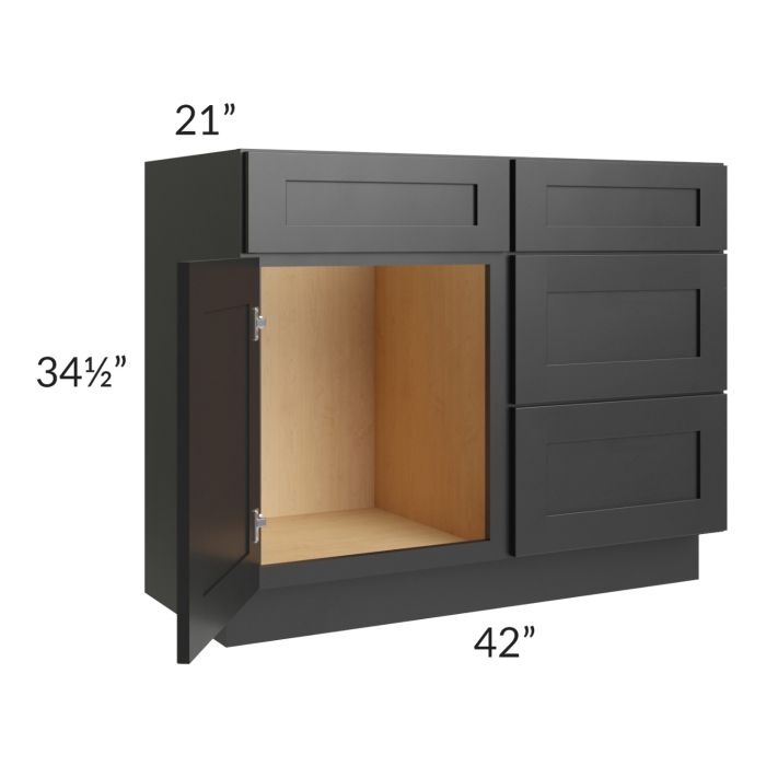 Onyx Black Shaker 42" Vanity Sink Base Cabinet (Drawers on Right)