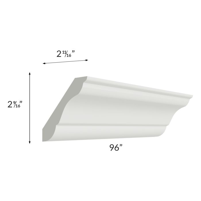 Crown molding. Installed height will be 2-9/16" and installed depth will be 2-11/16" (how far out it will extend from the cabinet).