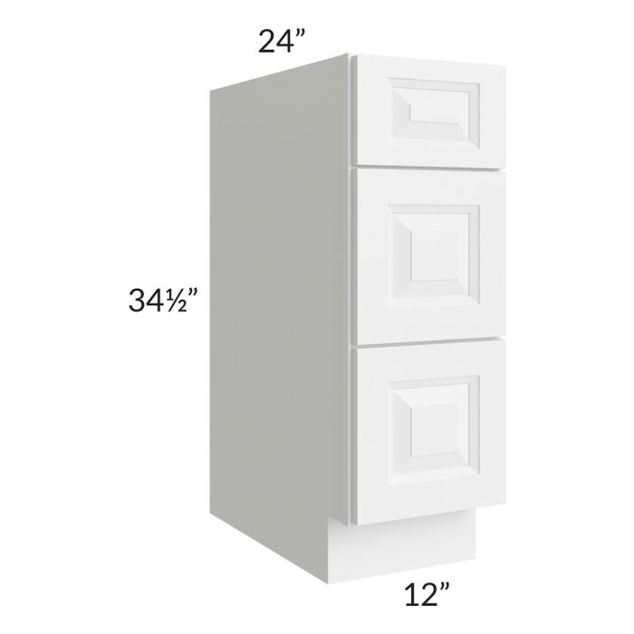 Pearl White 12" 3-Drawer Base Cabinet