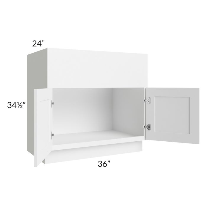 Farm sink base cabinet that has no shelves or drawers. The doors are 18" high and the front apron will need to be cut on site to fit the farm sink.