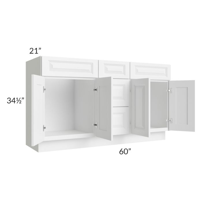 Pearl White 60" Vanity Sink Base Cabinet with Drawers