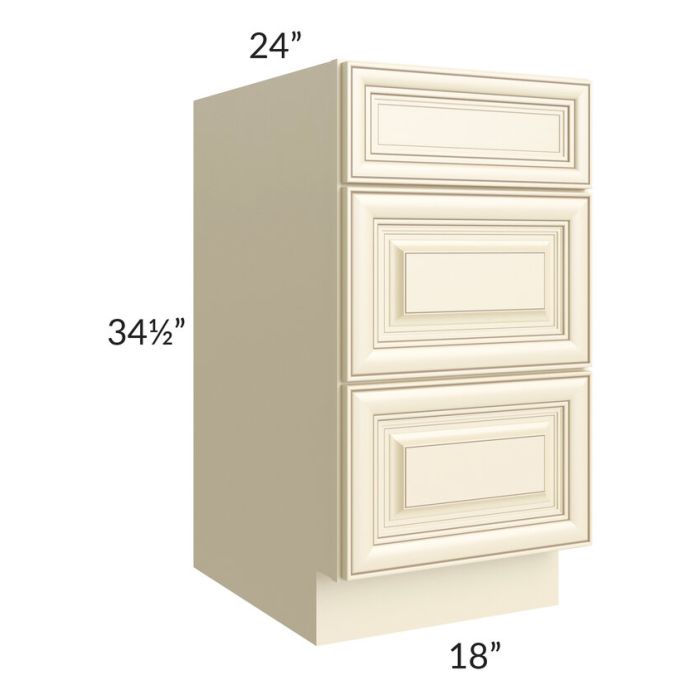 Phoenix Cream Glaze 18" 3-Drawer Base Cabinet